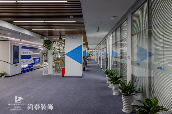 科技感的墻面,配上綠色植物裝飾,展示出科技與大自然完美結(jié)合風(fēng)格,完美突顯了企業(yè)文化。