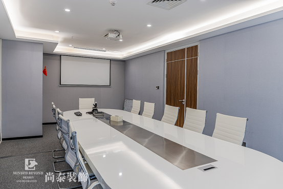 會(huì)議室的墻面以淡灰色主,配合百色桌椅,與工作空間的設(shè)計(jì)風(fēng)格不一樣,工作空間科技感的設(shè)計(jì),可以激發(fā)人的活力,創(chuàng)造力,而會(huì)議室則需要集中注意力,