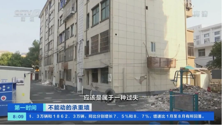 浙江杭州:裝修敲掉承重墻 整棟樓房成危房