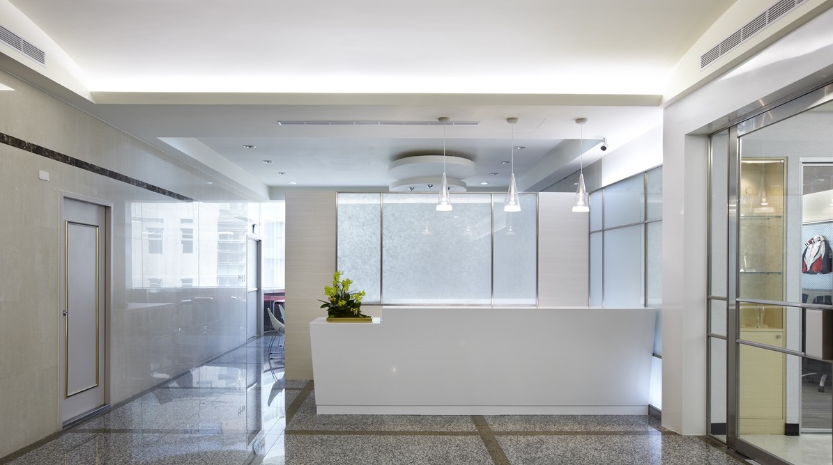 在迎賓大廳內(nèi),采霧面材質(zhì)做為四周墻面,并以亮面大理石鋪陳地坪,展現(xiàn)大器簡(jiǎn)約感,將大量純白色作為空間主調(diào),給人清爽舒適的體驗(yàn),同時(shí)巧妙配置兩張色彩鮮明的沙發(fā),讓跳躍色彩增添視覺(jué)活潑度,藍(lán)色招牌則使用壓克力雕刻,并配置超薄 LED 燈,營(yíng)造出反射的立體效果,加深品牌印象;會(huì)議室采用清玻璃門片,維持整體空間的通透感,使開(kāi)會(huì)氣氛透明且公開(kāi),并在會(huì)議室兩側(cè)墻面注入展示機(jī)能,用來(lái)放置公司商品,在整齊的陳列之下,給人一目了然的感受!