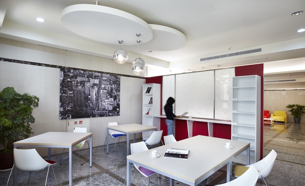 公司為了體貼員工,另外設(shè)置了休憩區(qū),不只可讓員工在這里養(yǎng)精蓄銳、休憩互動(dòng),更注入活潑圓潤(rùn)的空間線條、配置五顏六色的椅子,透過(guò)色彩產(chǎn)生視覺(jué)與腦力的激蕩,間接提升工作創(chuàng)造力!