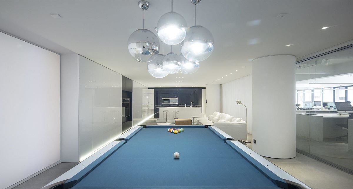 會(huì)議空間配置撞球桌及 7 字型大沙發(fā),使員工、來往賓客擁有回家般的自在感受。