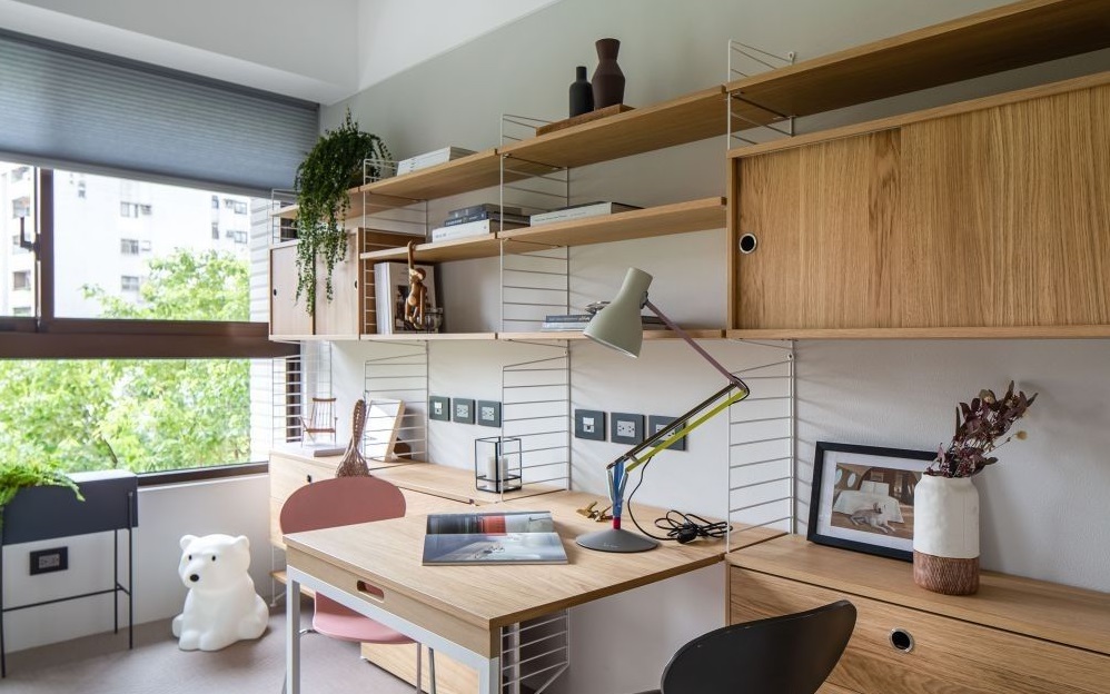 平時在辦公室打拼的你,是否也苦惱著家里沒有一個能辦公的好空間呢?這個時候就是完美應(yīng)用畸零角落的時刻!比方說樓梯下方空間,或者是一面平常沒在使用的白墻,可以釘上幾片層板作為桌面或收納架,再加上一張椅子和現(xiàn)成抽屜柜、小柜子來收納辦公所需物品,就能成為臨時辦公空間!