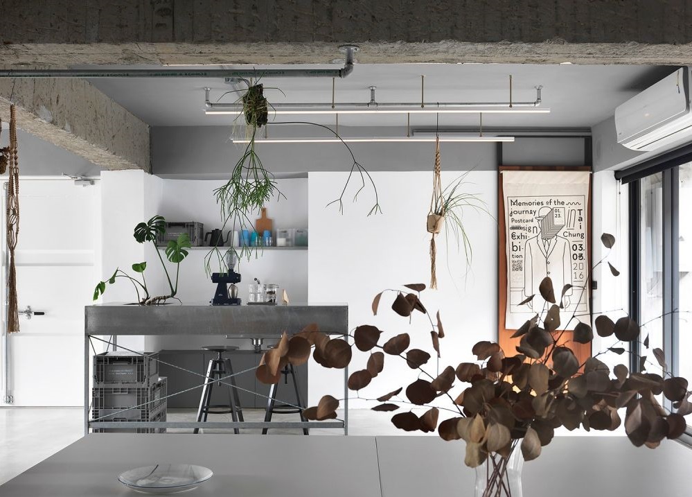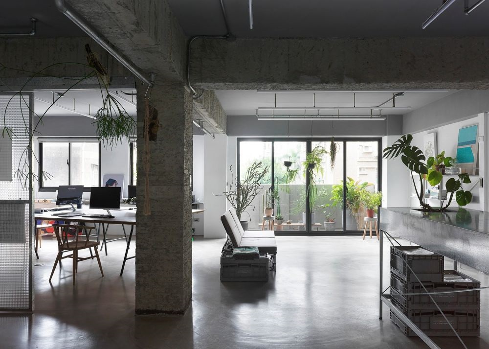 對(duì)于辦公空間的要求,就希望該有的機(jī)能都有,并在工作時(shí)能保持心情輕松且視野開闊。所以在格局上我用完全開放的設(shè)計(jì),不想讓墻體擋住了采光跟視野,明亮的空間,加上大大小小植物的點(diǎn)綴,讓工作更有氧活力。