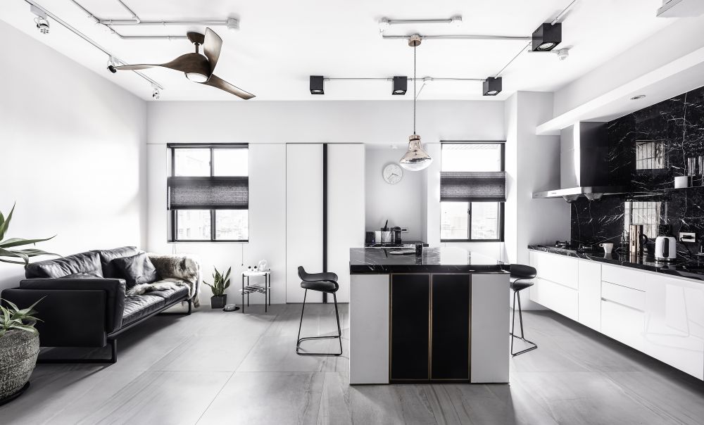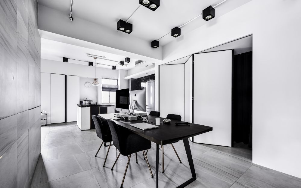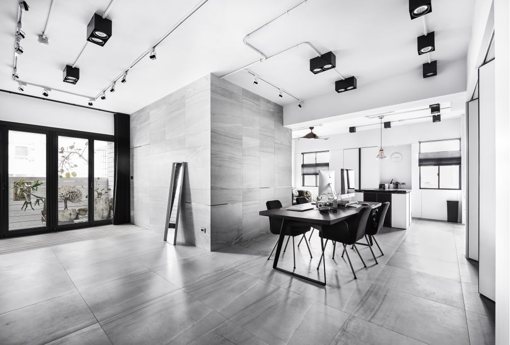 “將工作的生態(tài)融入空間中,結(jié)合攝影、更衣室、化妝臺有如小型的時尚伸展臺”氛圍設(shè)計(jì)總監(jiān)林英彥一語帶出整個空間的設(shè)計(jì)核心。從事時尚產(chǎn)業(yè)的一對夫妻,希望將品牌的風(fēng)格與個性帶進(jìn)自己的工作室同時融入生活中,于是造就了這個性鮮明、以黑、白、灰為主且住辦合一的空間。