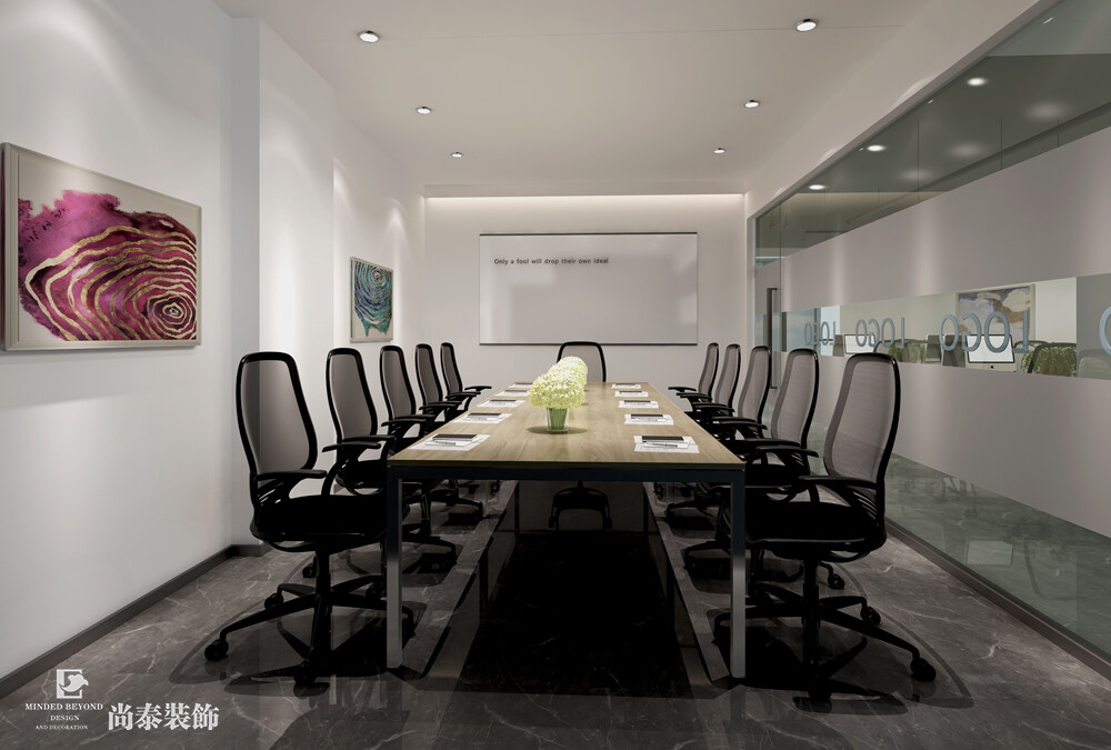 應用在用來召開重大事宜商討活動的會議室中,想要實現(xiàn)辦公室裝修設計好看實用同時滿足,聰明的設計師會選擇采用合適的軟裝布置來滿足。豐富色彩的裝飾畫來兩幅,顏色各異的造型吊燈來幾盞,好看的同時還能滿足照明需求,又能保證與會人員的工作效率。