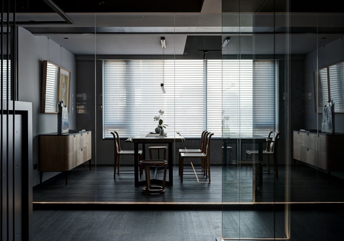 350平老屋變身新穎辦公室,設(shè)計師援引蛇紋石、鐵件、玻璃、木地板、螺旋管等建材,結(jié)合新東方風(fēng)語匯,在現(xiàn)代與古樸中,綻放低調(diào)華麗的新視界,快跟著小編一起來看看吧! 微光中的辦公室,安排承載歷史感的窗花,以嶄新姿態(tài)轉(zhuǎn)化為照明燈飾,并將燈光結(jié)合柜體,達到美形收納的效果,門口處因應(yīng)從一條毛線起家的企業(yè)發(fā)展源頭,在入門加入浮雕設(shè)計,鏤刻著毛紡公司的記憶,運用新的LOGO標(biāo)記蛻變的起點,而花蓮特有的蛇紋石則不時出現(xiàn)在每個角落,以獨一無二的紋理,宣告著與土地深刻的連結(jié),帶出充滿森林感的綠意;天花板采以Loft的手法設(shè)計,并在會議桌上方的天花板安排毛紡布疋,呈現(xiàn)新穎趣味的風(fēng)貌;而穿透的鐵件隔屏,則仿佛裝置藝術(shù)的存在,于空間進行垂直、水平延伸、放大,型塑后現(xiàn)代的未來感! 小編的最愛 不論入門處的雕塑端景、廊道盡頭的花藝布置,甚至董事長辦公室內(nèi)待客迎賓泡茶的桌、椅,每一件軟裝布置都經(jīng)過縝密安排,成功創(chuàng)造仿佛居家空間的溫暖氣氛,讓員工及到訪賓客,享有賓至如歸的舒適感受!
