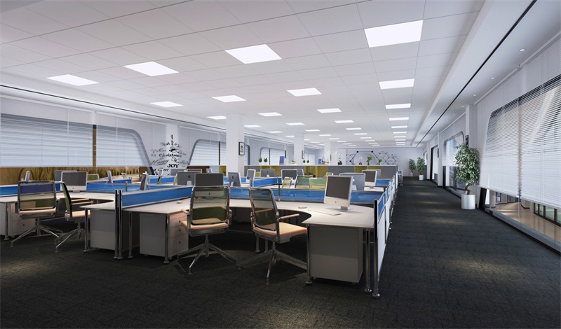 工作區(qū)域作為目前辦公場所中占比重最大的區(qū)域,涵蓋著公司的各個(gè)職能部門,包含了電腦操作、書寫、電話溝通、思考、工作交流、會(huì)議等辦公行為。在照明上應(yīng)結(jié)合以上辦公行為以均勻性、舒適性為設(shè)計(jì)原則,通常采用統(tǒng)一間距的布置燈具方法,并結(jié)合地面功能區(qū)域采用相應(yīng)的燈具照明。工作臺(tái)區(qū)域采用格柵燈盤,使工作空間光線均勻,并減少眩光。在集體辦公室通道區(qū)域采用節(jié)能筒燈照明,給通道補(bǔ)充光線。