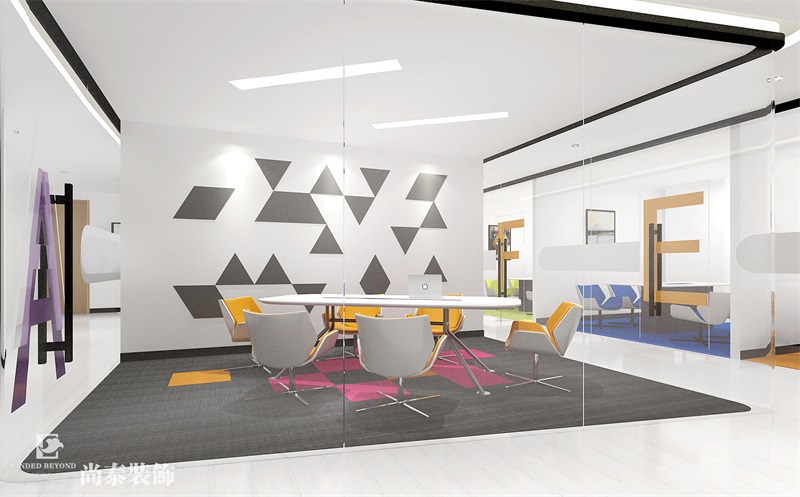 接待室作為接見合作伙伴和客戶的場地,營造的氛圍是舒適、放松、愜意、友好的。光氛圍以舒緩為主,部分由產(chǎn)品展示的地方,需要使用燈光重點(diǎn)展示。照明要突出洽談?wù)哂押玫谋砬椋梢圆捎蔑@色性較好的筒燈,以柔和的亮度為宜。同時(shí)注重立面企業(yè)文化或海報(bào)的表現(xiàn),可采用角度可調(diào)射燈來提高墻立面亮度。