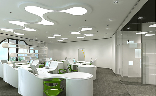 讓寫字樓給人一種明快感是辦公設(shè)計(jì)的基本要求。辦公環(huán)境明快是指辦公環(huán)境的色調(diào)干凈明亮,燈光布置合理,有充足的光線等,這也是寫字樓的功能要求所決定的。同時(shí),明快的設(shè)計(jì)與環(huán)保理念也息息相關(guān),自然采光好不好是判斷的重要一點(diǎn)。
