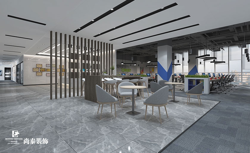 開放辦公區(qū)主要是員工聚集且長(zhǎng)時(shí)間所處的地方,整體打造的比較舒適透亮又比較大氣;位置比較舒適,通風(fēng)采光主要考慮優(yōu)先,開放區(qū)的面積體量較大,同時(shí)也是對(duì)內(nèi)使用,在設(shè)計(jì)方面就考慮輕裝修搭配軟裝的方法。過(guò)道區(qū)主要是人員的走動(dòng)和消防撤離等的主要?jiǎng)泳€,起引導(dǎo)人流并疏散作用的作用,簡(jiǎn)潔為主。