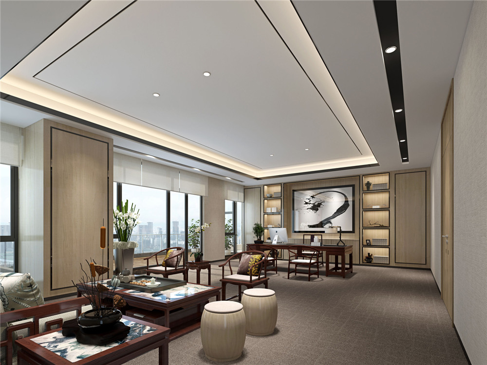 1、中式風(fēng)格辦公室裝修要注重整體感