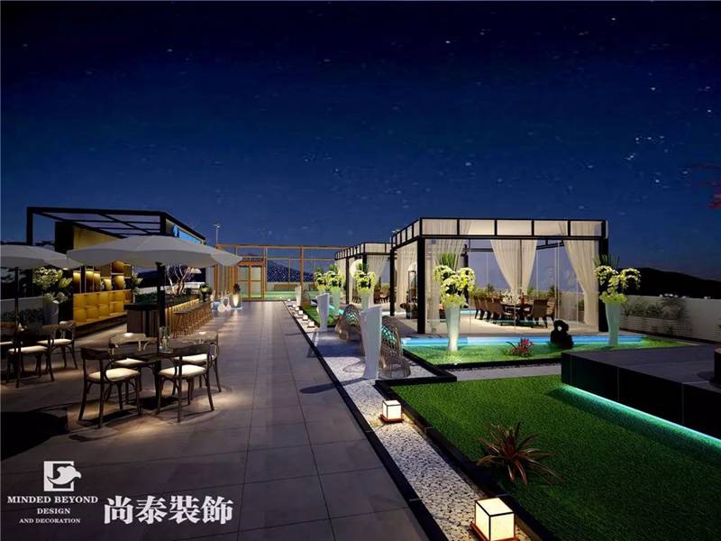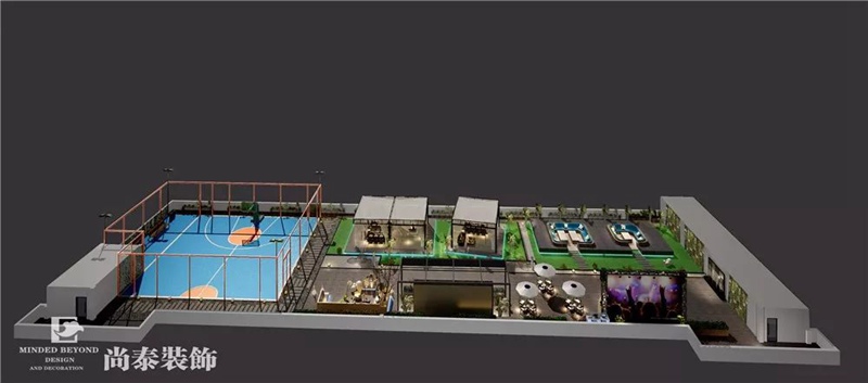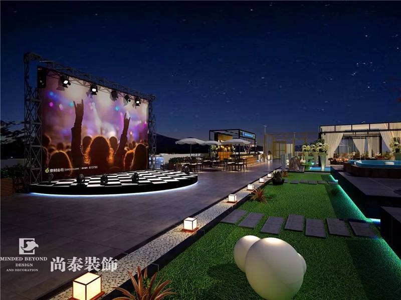 花園創(chuàng)意式的藝人表演&活動(dòng)中心位于頂樓區(qū)域,主要用于日常表演、舉辦活動(dòng),休閑聚會(huì)等等。作為年輕藝人的天地,舞臺(tái)必不可少,金屬材質(zhì)和大理石等材質(zhì)的使用契合搖滾、狂野的氛圍,開放愜意的環(huán)境讓這里也成為藝人釋放壓力、放松心情的一個(gè)空間。