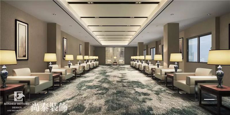中式風格的地毯以及傳統(tǒng)燈籠造型的燈具,搭配白色家具,給人意想不到的典雅,既體現(xiàn)了公司的強勁實力,也能獲得投資客戶的良好印象,還間接展示了企業(yè)務實、創(chuàng)新,穩(wěn)健的經營理念。