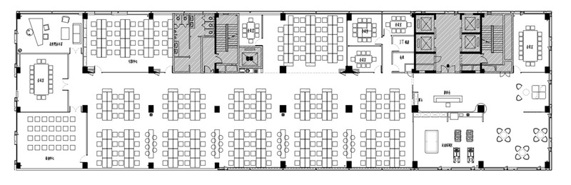 這個(gè)階段快速增長(zhǎng)的員工人數(shù)決定了辦公空間還是以功能性需求為主,公共空間/效能型空間的需求開始涌現(xiàn),企業(yè)文化在辦公空間中應(yīng)用有了更高的要求。家具上部分選擇本區(qū)域的一線品牌。