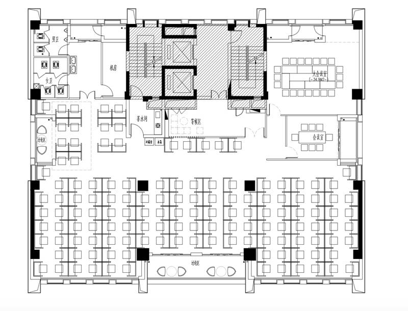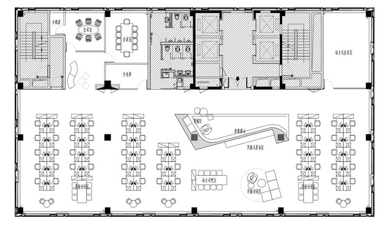 基本需求辦公室、會(huì)議室、工位、接待區(qū);開放式會(huì)議區(qū)、茶水區(qū)、休閑區(qū)、小郵局等;