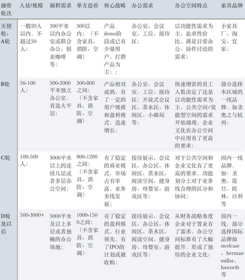 通過以上案例及歷年案例總結(jié),我們可以看出迅猛發(fā)展的中國(guó)企業(yè)不同融資階段的辦公空間具有某些共同的特點(diǎn)。