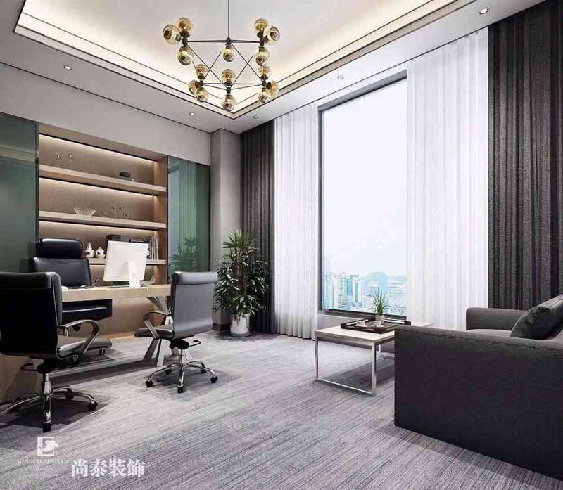 本案作為現(xiàn)代時尚風(fēng)格的辦公室與展廳一體化空間,尚泰裝飾的辦公室裝修設(shè)計定位即是簡潔時尚與展廳奢華藝術(shù)漆料的展示,通過部分風(fēng)格獨特的軟裝搭配結(jié)合天花燈光效果,營造出現(xiàn)代感極強的辦公氛圍和浪漫的異國情調(diào)樣板間空間。