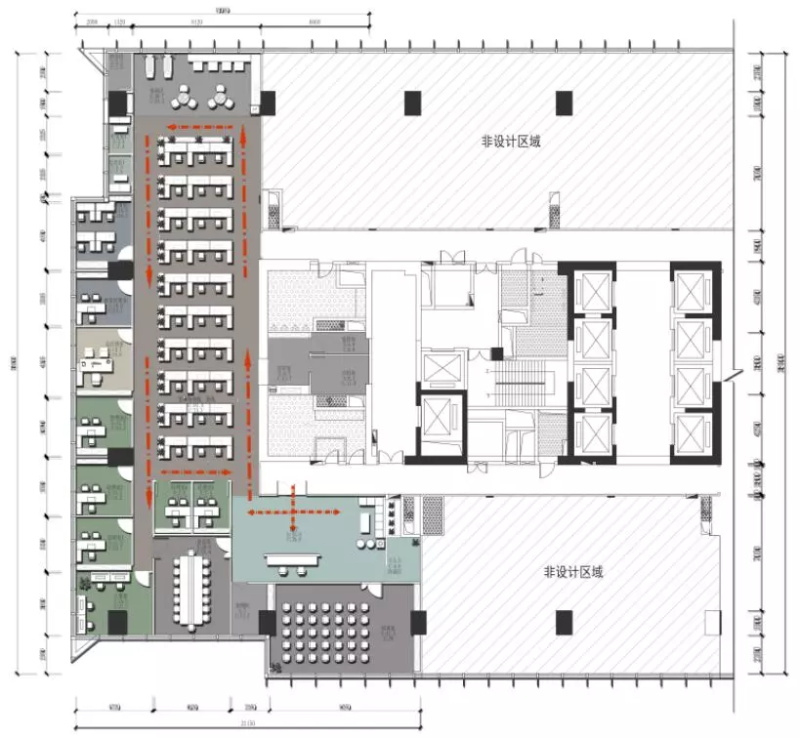 體現(xiàn)了建筑空間原有的美感,整體線條流暢,充分研究辦公空間動(dòng)線,分析人員辦公行為模式,