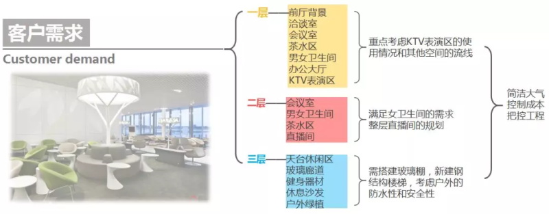 尚泰裝飾集團(tuán)設(shè)計團(tuán)隊與品效合一客戶進(jìn)行了充分的接觸與溝通,總結(jié)出客戶的基本裝飾需求。