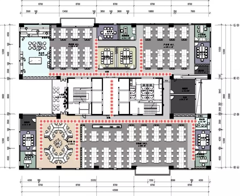 (2)、進行功能空間分類:合理規(guī)劃空間,將空間的功能最大化,規(guī)劃空間與空間的連接,保證一個辦公流程的連貫性,動線的靈活性,讓空間功能更加完善,增強空間的創(chuàng)造性與現(xiàn)代感。