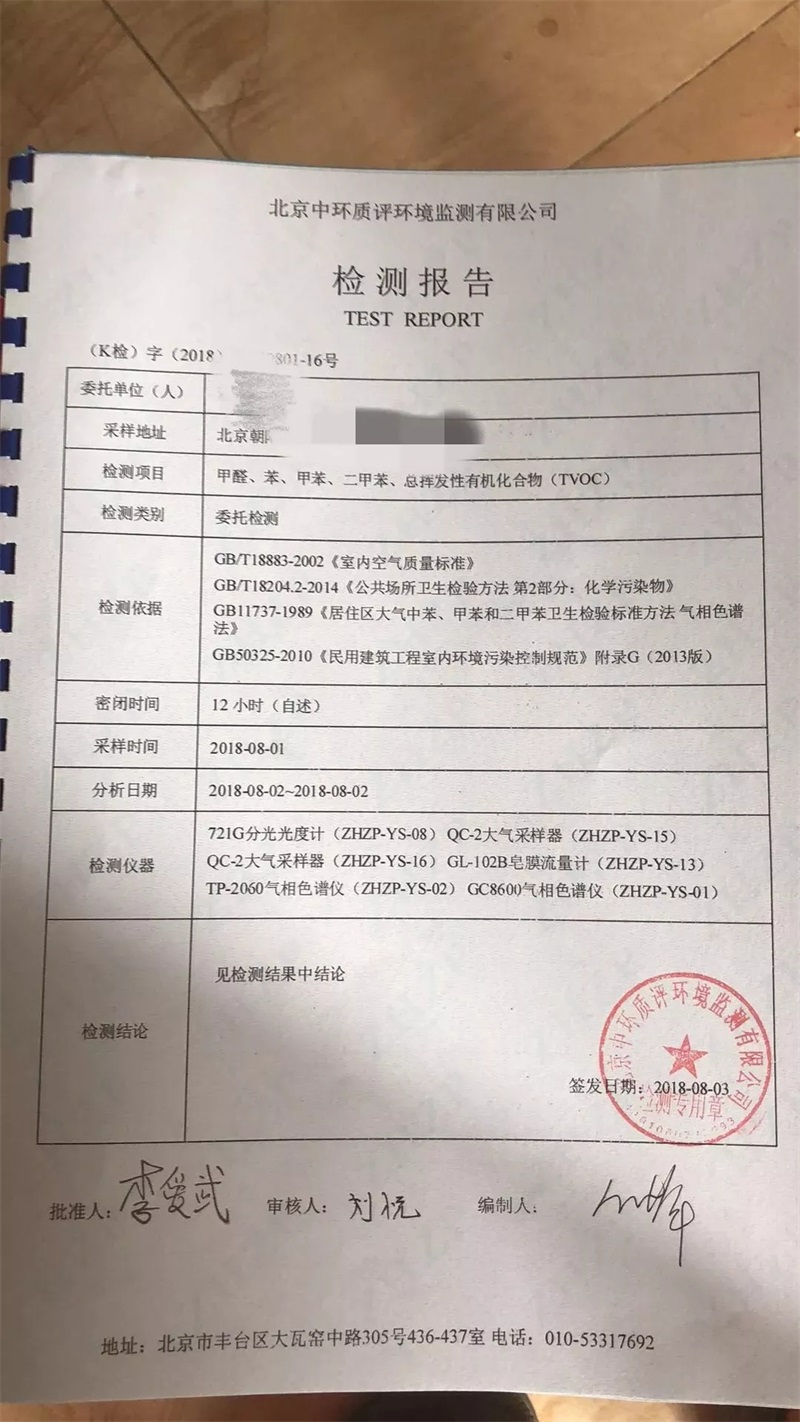 檢測報(bào)告里面詳細(xì)指出自如的出租房客廳的甲醛標(biāo)準(zhǔn)嚴(yán)重超標(biāo),對租戶的身體健康帶來了嚴(yán)重的影響!