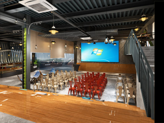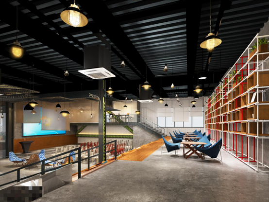 黃老師:在與客戶(hù)溝通的過(guò)程中,他們希望打造一個(gè)高品質(zhì)、人性化、創(chuàng)業(yè)氛圍濃郁的創(chuàng)客空間,我們決定采用當(dāng)下頗為流行的工業(yè)風(fēng)格。整體設(shè)計(jì)出了集辦公、路演、休閑、活動(dòng)、展示、讀書(shū)、玩耍等功能為一體的綜合型空間,甚至還有母嬰室、兒童滑梯、吸煙區(qū)、咖啡吧等超人性化分區(qū),呈現(xiàn)活躍與感染力的設(shè)計(jì)神韻。