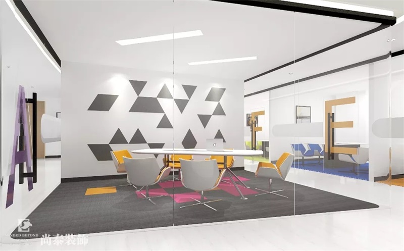 會議室,平時是為了公司的召開會議,要是對問題的解決和討論,設計師使用了大量的活躍色,來提升員工在開會的激情,煥發(fā)設計人員對公司的管理和設計方案的創(chuàng)新思維。