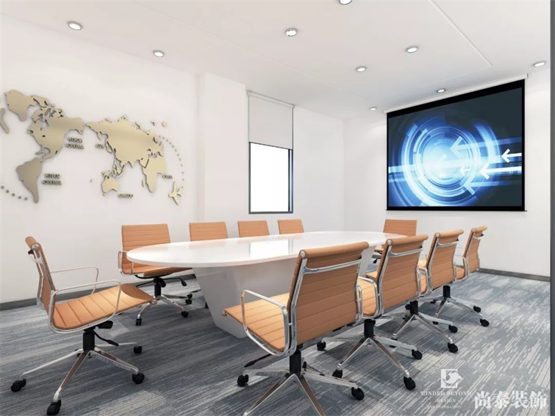 科技辦公室裝修在造型上追求大膽創(chuàng)新,替代傳統(tǒng)的造型裝飾要素,造型更加靈活和流暢。