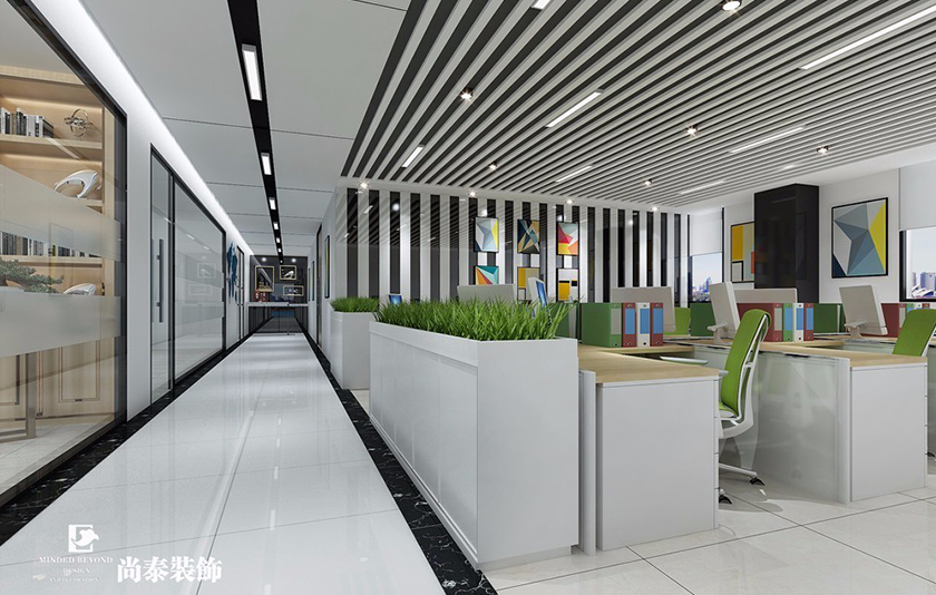 整齊排列的辦公家具突出了現(xiàn)代辦公環(huán)境講究效率的特征,多彩的裝飾物將現(xiàn)代、創(chuàng)意。活力等特點(diǎn)巧妙地融入到環(huán)境中。