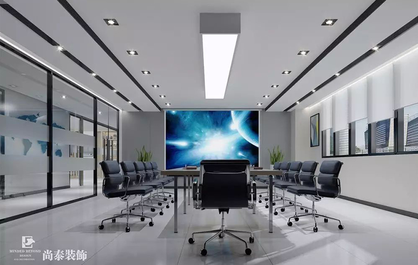 布局對(duì)稱,規(guī)范方整的會(huì)議室,高科技的元素與銳利的線條營造出簡練、正式、科技化的緋聞氛圍。