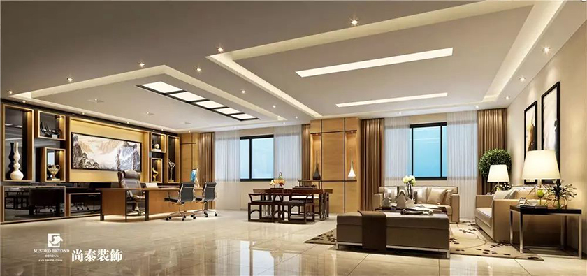董事長辦公室利用中式元素來演繹永不過時(shí)、源遠(yuǎn)流長的中國文化,內(nèi)設(shè)的接待區(qū)搭配端莊舒適的辦公家具,給客戶賓至如歸的感覺,陶瓷、水墨畫裝飾則給人意想不到的典雅。