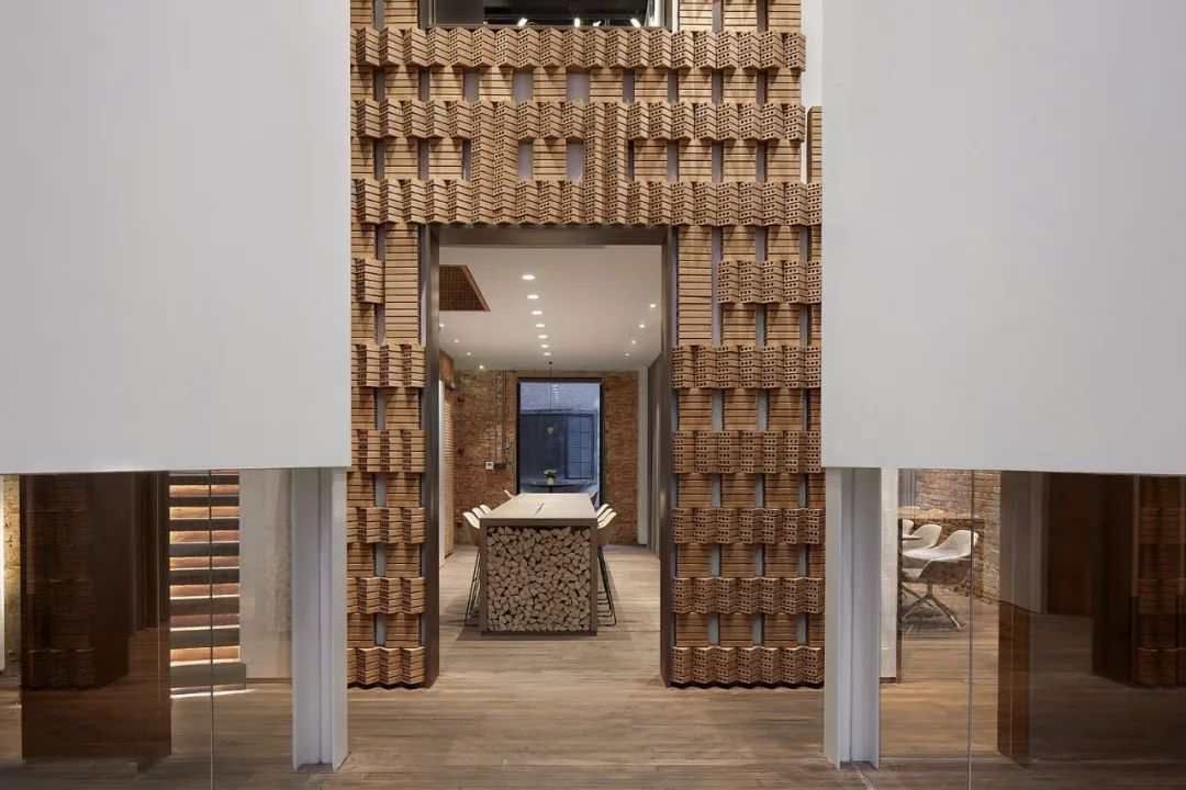 辦公室的磚墻走“清冷”風(fēng),這一處是相對老的磚墻,新老磚墻組合構(gòu)成空間,這種新的表現(xiàn)方式既致敬了老磚墻,又給了空間新的延展性,是一次漂亮的辦公改造設(shè)計,這才是工業(yè)風(fēng)辦公室裝修設(shè)計!辦公室里設(shè)計里,還是有很多人喜歡磚墻設(shè)計的,或許是因?yàn)樗靸r低廉又帶有藝術(shù)氣息,但是大家要知道,磚墻設(shè)計并不只有粗獷的工業(yè)風(fēng)哦!