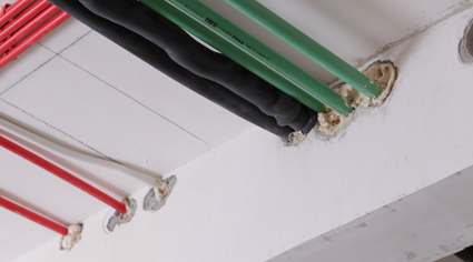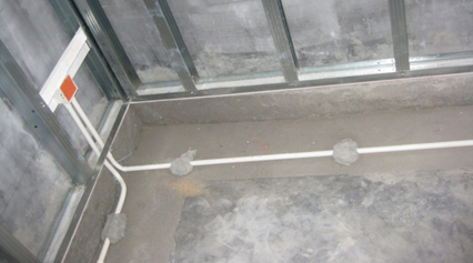 地下室綜合防潮工藝: 尚泰的地下室防潮包括一系列工藝集合:水石膏板隔墻系統(tǒng)、地下室 用材規(guī)定、地下室水電施工規(guī)定、地面防水涂層、地面丙綸卷材防水 施工、木制品離地規(guī)定……主要針對(duì)地下室墻、地部的潮氣而進(jìn)行阻 隔,確保實(shí)際使用中的良好體驗(yàn) | 隔墻底座防潮工藝: 在濕區(qū)進(jìn)行輕質(zhì)隔墻施工時(shí),為阻隔地面濕氣對(duì)隔墻的影響,采取地面混凝土止水帶工藝,并采用鍍鋅輕鋼龍骨作為隔墻基層,確保墻體無(wú)霉變與乳膠漆脫落 | |