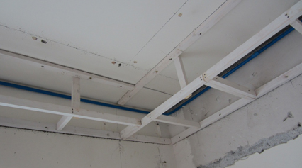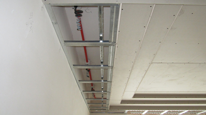 輕鋼龍骨阻燃材料 輕鋼龍骨具有極佳防火性能,因此除了極少數(shù)特殊情況外,尚泰在吊頂工藝上實現(xiàn)了全輕鋼龍骨造型 | 木龍骨膨脹型防火涂料 在某些特殊造型需要使用木龍骨時,外表層將全面涂刷膨脹型防火涂料,它在受熱時分解生成泡沫狀,在表面形成保護層,隔絕與空氣的接觸,使火焰熄滅 | |