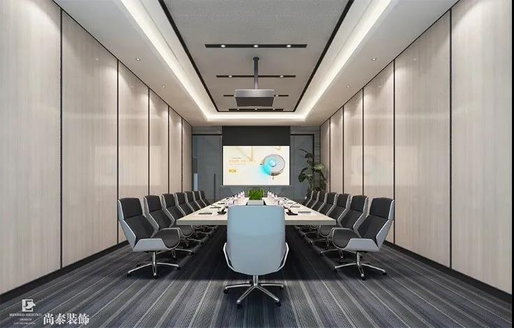 會(huì)議內(nèi)部,設(shè)計(jì)師大膽地運(yùn)用線條,天花、墻面、地毯都輔以黑色的線條元素,在視覺上延伸整個(gè)空間,層次感更豐富,簡潔而時(shí)尚。