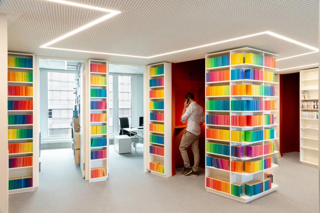 你有多久沒(méi)看過(guò)一本紙質(zhì)書(shū)了?盡管處于網(wǎng)絡(luò)信息發(fā)達(dá)的現(xiàn)代,仍然有很多人對(duì)紙質(zhì)的書(shū)本情有獨(dú)鐘。或許是真實(shí)觸感相比起冷冰冰的屏幕,要更讓人溫暖一些。在德國(guó)柏林的Suhrkamp Verlag出版社辦公室設(shè)計(jì)以書(shū)為體塊展開(kāi),使其無(wú)需依賴(lài)其他的裝飾元素。書(shū)便是整個(gè)出版社辦公空間里最重要的裝飾品,這實(shí)在是再貼切不過(guò)了。