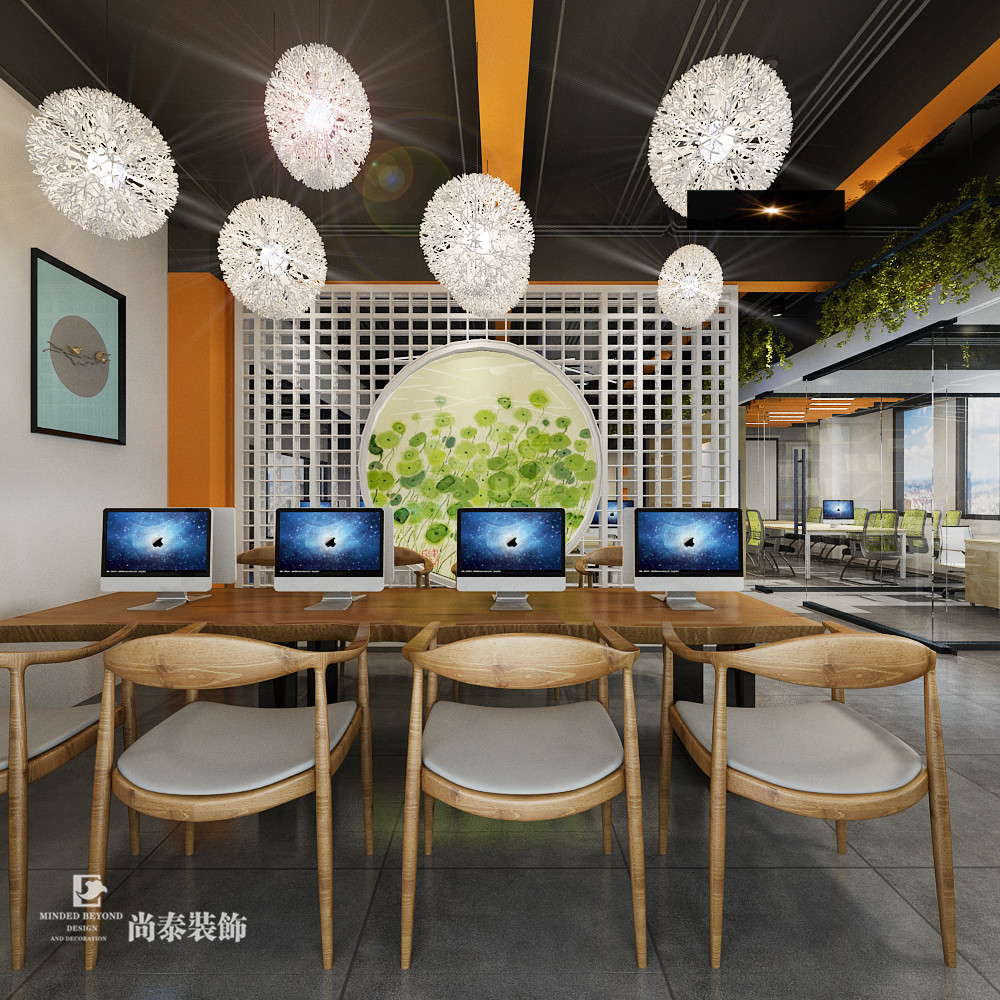 簡(jiǎn)單利落的線條組成了大方的背景墻,搭配小型實(shí)用立面柜,貫徹了企業(yè)“環(huán)?!?、“綠色”的文化理念。